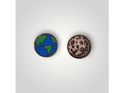 Dřevěné náušnice s motivem Planety Země a Měsíce ideální pro milovníky vesmíru a...
