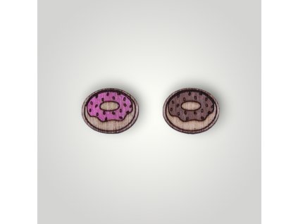 Dřevěné náušnice ve tvaru donutů k nakousnutí. Originální a sladký doplněk pro...