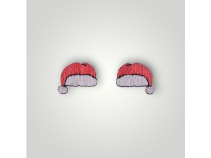Ručně vyráběné dřevěné náušnice ve tvaru roztomilých červených vánočních čepiček s...