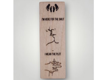 Dřevěná knihomolská záložka – "I'm here for the smut... I mean the plot." – odvážný a...