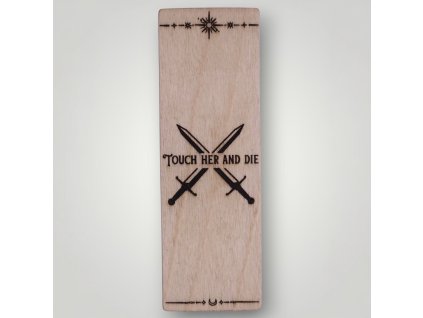 Dřevěná knihomolská záložka – "Touch her and die" – intenzivní a vášnivý doplněk pro...