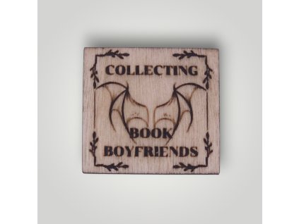 Dřevěný knihomolský odznáček – "Collecting book boyfriends" s motivem křídel. Perfektní...