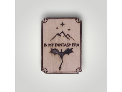 Dřevěný knihomolský odznáček – "In my fantasy era". Symbol pro všechny, kdo žijí ve...