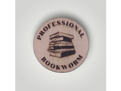 Dřevěný knihomolský odznáček – "Professional bookworm". Stylový a vtipný doplněk pro...